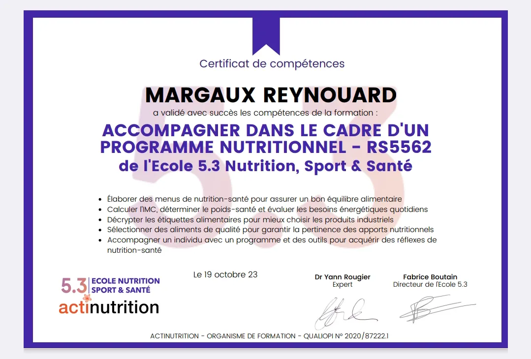 Tout le contenu de ce programme est fondé sur mes connaissances en nutrition