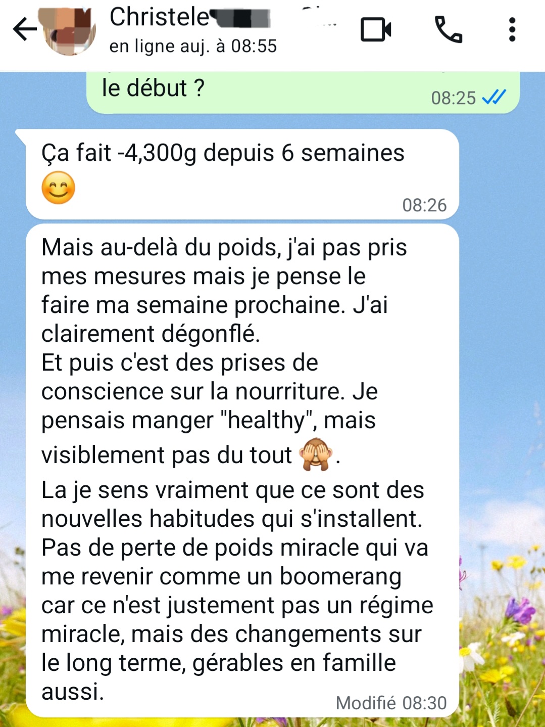 C'est même encore mieux que ce que j'ai fait à l'époque car depuis ce temps j'ai accompagné + de 300 personnes dans leur perte de poids. J'ai donc optimisé mes outils pour les rendre encore plus accessibles et efficaces.